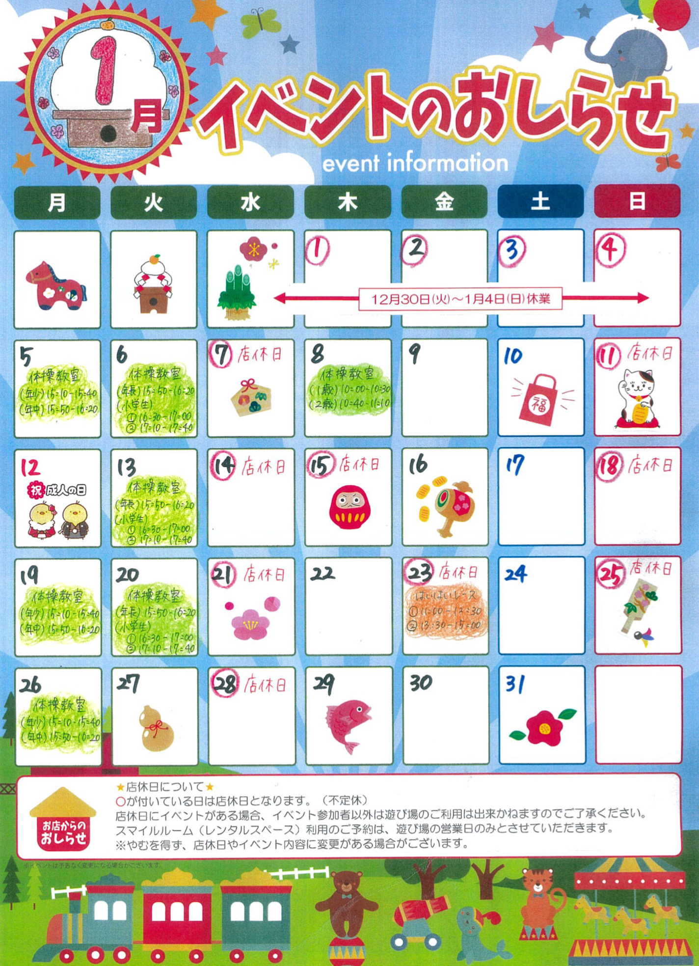 お待たせ致しました! 1月のイベントカレンダーが完成しました!