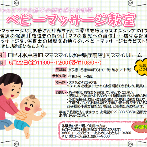 <受付時間>当日10:30~10:55までに、ママスマイル店内受付までお越しください。